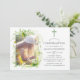 Convite de confirmação da floresta florestal selvagem com samambaias, flores silvestres e morangos e um fundo de lavagem de cor verde-aquosa. É recomendada uma foto em forma de retrato. É recomendada uma foto em forma de retrato.