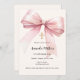 Um bege macio, fundo colorido creme, decorado com um arco grande cor-de-rosa e uma cruz ouro. Personalize e adicione um nome e detalhes.