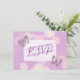 Cartões de confirmação de jantar de recepção de casamento com borboletas roxas e lavanda.