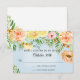 Cartão de Resposta de Confirmação | obra de arte em aquarela recém-pintada em um estilo moderno e solto. O fundo de cor azul celeste suave destaca as cores quentes de flores amarelas, pêssego e rosa, frescas de um jardim botânico com folhas e folhagens agrupadas. Direitos autorais, Audrey Jeanne Roberts.