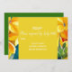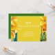 Um moderno, rústico e elegante RSVP de casamento com flores amarelas de uma pintura original aquarela da artista Sacha Grossel. O texto personalizável está em escrita elegante contra um fundo amarelo de Primavera. RSVP de casamento artístico original e único. Um design simples e elegante para o seu dia especial. Casamento com tema de flores amarelas da Primavera ou casamento moderno no campo.