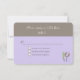 Cartão de confirmação de casamento moderno feito em lavanda pálida e taupe. Texto gráfico colorido com a palavra AMOR, decora a parte inferior direita. Personalize o texto personalizado para atender às necessidades do seu casamento.