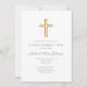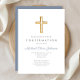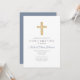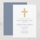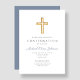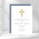 Convite de Confirmação Personalizado de Cruz de Madeira Religiosa Azul.