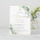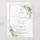PixDezines Convite de confirmação, com aquarela verde e goma Eucalyptus; uma cruz de ouro falsa, poeira de ouro e uma armação acentuadas com escrita de caligrafia de luxo. Todos os elementos editáveis e removíveis.