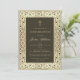 Este elegante convite de confirmação de garoto negro de ouro com ar vintage tem um quadro de ouro floral de condecorações intrincadas de rosas selvagens sobre fundo preto. Todo texto pode ser personalizado e tem uma cor de ouro semelhante às rosas douradas no quadro. Acima do texto, há uma cruz de ouro. A palavra "confirmação" é escrita num guião caligráfico elegante. No verso, há uma cruz de ouro sobre fundo preto no mesmo quadro floral. O quadro de rosas de ouro é de um cobrir de livros antigos, de 1912, de As Obras Políticas Completas de Geoffrey Chaucer, agora no dominio público.
