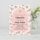 Um quadro de arco sobre um padrão de grama pampas e flores cor-de-rosa e uma cruz ouro. Personalize e adicione um nome e detalhes.