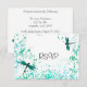 Esta Confirmação de Presença para Recepção de Casamento com Libélulas Azul-turquesa apresenta libélulas em um design de respingos de tinta. Procure por Convites de Casamento e Anúncios de Salve a Data correspondentes.
