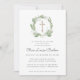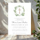 Um convite de confirmação moderno, personalizável, que inclui uma delicada lírio do design floral do vale em torno de uma cruz de impressão de ouro ornamentado, sobre um fundo limpo e com uma elegante inscrição.