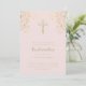 Um convite de confirmação de na moda com acentos de ouro em um fundo de blush. Personalize usando as modelos para criar uma aparência exclusiva. Com ornamentados e flores em ouro, comemora esse importante evento. Uma simples cruz no centro está na frente e no verso. As instruções do modelo o guiarão pela personalização, mas se precisar de ajuda, entre em contato com o designer que pode ajudá-lo. Adicione um verso de bíblia adequado no verso ou você pode excluir esse campo se desejar.