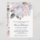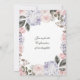 Estes convites simples e bonitos da confirmação caracterizam um buquê de flores bonito da aguarela em um fundo branco limpo. Há hydrangeas roxos coloridos silenciado, cora peônias e rosas cor-de-rosa, e obscuridade - folha e as folhas cinzentas. Uma mistura de texto moderno do serif e de tipografia elegante do roteiro adiciona o estilo clássico. A parte traseira do convite tem um quadro floral de harmonização bonito.