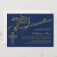 © Designs socialitas. Nosso belo convite para confirmação de caligrafia tem uma pomba, cruz e belo texto de caligrafia em ouro. O fundo é marinho azul. Um convite encantador que é neutro em termos de gênero e que pode ser usado para um menino ou menina. Substitua facilmente nosso texto de modelo com o seu. Todos os elementos de design podem ser movidos, redimensionados ou excluídos.