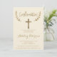Faux gold foil typografia elegante amarela com confirmação cruzada dourada. Um moderno convite de festas de batismo com esta moderna, simples, elegante e elegante tipografia falsa de pincel de ouro amarelo-escada em um fundo amarelo. Perfeito para uma festa simples, elegante e moderna. Se precisar de algum texto mudado e personalizado, não hesite em entrar em contato comigo!