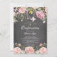 Linda floral cor-de-rosa com folhas de ouro e convite de confirmação cruzada num fundo de quadro com um fundo floral de coordenação para um toque especial extra.