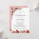 Blush cor-de-rosa-d'água floral Aviso de confirmação em espanhol, com excelente arranjo floral no canto superior esquerdo e campo de flores na seção inferior do cartão. O mesmo convite também está disponível em inglês. Flores em uma linda moda, cor-de-rosa, rosa poeirento, marfim, pêssego e tons burgundy. O cartão está de volta em cor-de-rosa pincelado com detalhes florais no fundo. Convite com seção para detalhes de "Cerimônia" e "Recepção". Coordenação de produtos disponíveis. Parte do nosso casamento e da coleção de eventos do "Céu em Rosa".