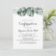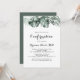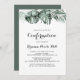 Este convite de confirmação floral branco verde tropical é perfeito para um evento religioso rústico. A design apresenta palmeiras verdes folhas buquês com flores brancas adoráveis.