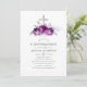 Rosas púrpura de ameixa escura e convites para confirmação de folhagem tropical com brilho prateado com lavagem de marinho azul com aquarela inversa.