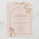 Lindas cores d'água florais com gramíneas florais com uma moldura de arco de ouro-chico, seus detalhes de confirmação na tipografia na moda gold em um fundo rosa-pincelado e suave. Projetado por Thisnotme©