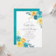 Turquesa e convite de confirmação floral amarela com tipografia elegante de escrita manual personalizável para as suas especificidades de evento.