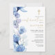Convites Confirmação Floral Transparente Azul Empoeirado Do