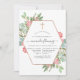 Convite de confirmação de natal colorido de água salgada de natal, com um quadro geométrico rosa dourado e cruz, eucalipto, contraplacado e pinheiro complementado por uma lavagem de cor d'água colorida da casa da moeda inversa.