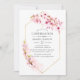 Convite de confirmação floral de cor d'água cor rosa com sakura florssom com quadro geométrico dourado personalizável para suas especificações de evento.