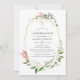 Convite de confirmação de verde em Woodland com ervas selvagens, samambaias, folhas e eucalipto com estrutura geométrica de ouro personalizável para suas especificidades de evento.