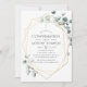 Convidado de confirmação de eucalipto de prata com cor d'água de tendência com quadro geométrico dourado.