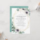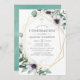 Trendy geométrico eucalipto verde e flores de papoila em tons de pastel primeiro convite de confirmação com moldura geométrica dourada e lavagem com aquarela de menta inversa.