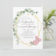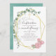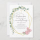Trendy geométrico eucalipto verde e rosas cor-de-rosa pinceladas, convite de confirmação com moldura geométrica dourada e lavagem com aquarela de menta inversa.
