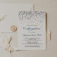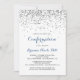 Este convite de confirmação minimalista de confete prateado é perfeito para um evento religioso rústico. O simples e elegante design apresenta um confete prateado e uma tipografia clássica de rico em azul e preto.