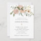 Este simples e elegante convite de confirmação apresenta um buquê rústico de flores aquáticas e verde em tons neutros de pêssego, terracota e marfim, com texto escuro e uma cruz falsa de ouro.