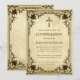 Este convite de confirmação vintage tem uma moldura ornamentada antiga com decorações barrocas elegantes e um fundo que simula pergaminho. Acima do texto há uma cruz religiosa. O texto, a cruz e a moldura são marrom-escuro, quase preto, o fundo se assemelha a papel antigo. Todo o texto pode ser personalizado.