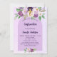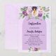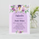 Um fundo violeta, lavanda, de cor aquosa. Decorados com flores violetas e púrpuras, de cor aquosa, e com uma cruz ouro. Personalize e adicione seu nome e detalhes de recepção.