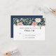 Cartão de Resposta RSVP | combina com o casamento Azul Marinho e Rosa, Conjunto de Convites de Casamento Coroa de Rosas Marfim. Floral pintado à mão com aquarela com folhas e folhagem da floresta de eucalipto verde. O verso tem um fundo azul marinho com uma coroa floral que destaca o texto em caligrafia: Rsvp. Direitos autorais, Audrey Jeanne Roberts.