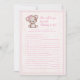 Urso-bebê marrom e rosa adorável para o chá de fraldas de uma menina. Quem Conhece Melhor Mamãe? Jogo de chá de fraldas. Cobertura cor-de-rosa com borda pontilhada rosa para fundo. Modelos fornecidas atrás.