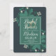 Convites de chá de panela de noiva com folhagens de rosa e anéis de casamento projetados pela Dream Big Digital Design