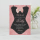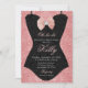 Fundo brilhante em rose gold com uma obra de arte em forma de espartilho de renda preta é uma maneira bonita de convidar seus convidados para um chá de lingerie de noiva.