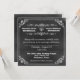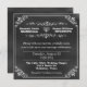 Trendy Chalkboard parece um convite de casamento feito para parecer um antigo conselho negro. Gráficos de branco, borda de rolagem decorativa e separadores de texto, com texto feito em branco a partir de diferentes fontes de estilo. Personalize todo o texto para atender às suas necessidades de casamento. Convite à procura de excelentes para casamentos rústicos, country chic, chique, preto e branco, vintage ou tradicionais. Produtos de casamento correspondentes disponíveis.