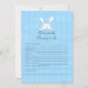 Um coelho branco acima do título do jogo com azul-bebê, um fundo de diamante argyle. Modelos criaram por você. Este é um conselho para o jogo de chá de fraldas a Mamãe.