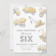 Six & Strong! Watercolor Construction Vehicle 6th Birthday Invitation