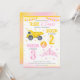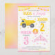 With soft watercolor details, colorful stars, and a bold split layout for easy personalization, this invite is ideal for a construction princess birthday, sibling joint party, trucks and tiaras theme, girly construction party, editable kids birthday invitation, and a pink and yellow birthday celebration.