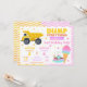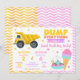 The fun headline “Dump everything for a sweet birthday party!” brings both themes together in a creative and memorable way. Soft stars, pastel accents, and a bright zigzag border create a happy and welcoming look.