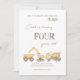 Get ready to 'stop the traffic and close the road' for a fantastic celebration! Our construction-themed invite for your child's 4th birthday is all about fun and excitement. Featuring playful yellow construction trucks and the word 'FOUR' in charming watercolor font, this editable invitation is your ticket to a construction-themed party that'll leave a lasting impression. Let's dig into a memorable birthday bash together!