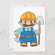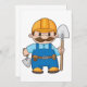 Um construtor de pé segurando uma pá. Esta design parece realmente eficaz neste Convite
