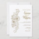 Um convite chic moderno, com um esboço floral elegante e uma inscrição romântica em ouro antigo com um e em caramelo claro. A parte de trás do cartão revela uma luz quente de bronzeado com um contorno floral. Você pode adicionar seus detalhes de casamento no menu personalizar. Isso faz parte de uma suite de casamento clássica que inclui o envelope, menu e muitos mais essenciais.