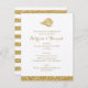 Estes convites elegantes fazem um verdadeiro salto com sotaques dourados brilhantes, uma concha de ouro, e listras douradas clássicas, ousadas e brilhantes no verso. Personalize o texto do convite para atender às suas necessidades. Um design perfeito para uma celebração temática náutica.