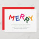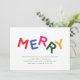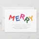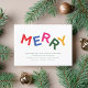 Entra num mundo de charme minimalista e alegria vibrante com esta maravilhosa design de feriado com os detalhes do seu partido ao lado de letras coloridas em negrito que soletram a palavra "Feliz" usando a tipografia brincalhona.