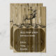 Um convite rústico com um alce e um alce que se chateiam na borda e em celeiros de madeira. O lado de trás dos convites apresenta a mesma cena rustica do país e uma área para personalizá-la com os detalhes do evento. Completamente personalizável com seus próprios detalhes.