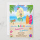Convite de aniversário de Luau convite havaiano para uma garota. Um convite bonito no estilo havaiano para o aniversário de uma menina loira, surfs, praia e oceano azul, e alguns equipamentos de festa tropical. Basta editar este modelo fácil de usar no menu Personalização.