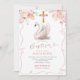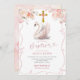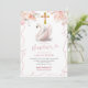 Convocação de Swan, Arco Branco e Rosa, Convocação FLoral para o Batismo, Convocação para o Cristal de Flor Selvagem Rosa, Convocação para o Batismo de Menina Editável, Convidado para o Batismo de Menina Editável